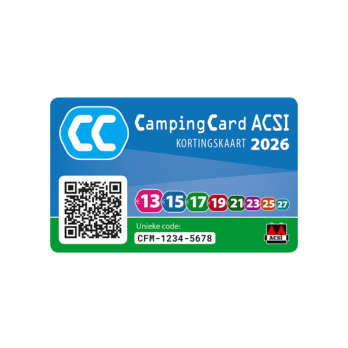 Wir akzeptieren ACSI, ADAC, Camping-Key und Best-Deal. Um eine Buchung mit diesem Rabatt zu machen, nehmen Sie bitte Kontakt mit uns auf. Oder buchen Sie online und wählen Sie dann bei Schritt 3. Ihre Rabattkarte.